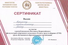 Со 21 по 23 марта 2017 года в Нижнекамском муниципальном района состоялся республиканский этап Зимнего фестиваля Всероссийского физкультурно-спортивного комплекса «Готов к труду и обороне» (ГТО) среди обучающихся образовательных организаций. Агрызский муниципальный район награжден сертификатом участника.