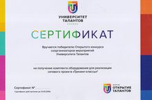 С 17-19 декабря 2015 года с участием широкого круга экспертов и наставников регионов России в Казани АНО «Казанский университет Талантов 2.0» провел экспертные и конструкторские работы на площадке Форума «Открытие талантов». По итогам Форума сертификат победителя Открытого конкурса соорганизаторов мероприятий УНИВЕРСИТЕТА ТАЛАНТОВ вручен Шушаковой Елене Николаевне – методисту Муниципального казенного учреждения Агрызского муниципального района Республики Татарстан на получение оборудования для реализации сетевого проекта «Тренинг-классы». Комплект оборудования на сумму 200 (двести тысяч рублей) поступит в МКУ «Управление образования» для проведения тренингов с учащимися общеобразовательных организаций района.