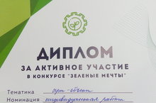 Дипломами Депутата Государственного совета РТ М.И.Галиева за активное участие в конкурсе «Зеленые мечты» на тему «Мы- за чистый Татарстан» награждены обучающиеся МБУ ДО ДДТ «Радуга талантов», МБОУ Терсинская, Кичкетанская , Иж-Бобьинская, Кадыбашская, Красноборская СОШ, Гимназия №1, Девятернинская , Азевская ООШ. В числе награжденных - воспитанники МБДОУ Красноборский, Терсинский, детский сад №1 и №5. Выражаем благодарность педагогическим коллективам за весомый вклад в экологическое воспитание подрастающего поколения.