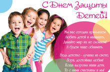 Дети — маленькие частички большого счастья, чудо, которое наполняет жизнь каждого взрослого неподдельной радостью и теплотой. Дети так нуждаются в любви и заботе, в родительской ласке и хочется, чтобы каждое детское сердце не было обделено этим маленьким счастьем. В День защиты детей желаем каждому ребенку иметь крепкую семью и все необходимое для беспечного детства. Пусть детские улыбки освещают нашу планету, и каждый из маленьких обитателей нашей земли будет здоровым и счастливым.