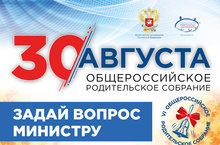 30 августа в одной из школ Санкт-Петербурга состоится встреча Министра просвещения Российской Федерации Васильевой О.Ю. с родителями школьников. Общение пройдёт в формате живого диалога и видеоконференции с прямыми включениями из разных регионов страны. В этот раз на связь с центральной площадкой в Санкт-Петербурге выйдут 9 российских городов из всех федеральных округов. Благодаря онлайн-трансляции за Общероссийским родительским собранием можно следить из любой точки страны и мира.