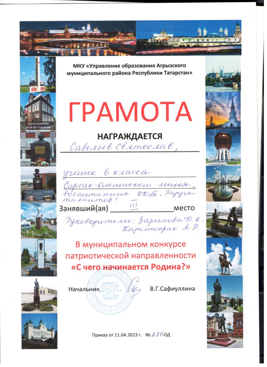 Муниципальное бюджетное общеобразовательное учреждение Сарсак-Омгинский лицей Агрызского муниципального района Республики Татарстан