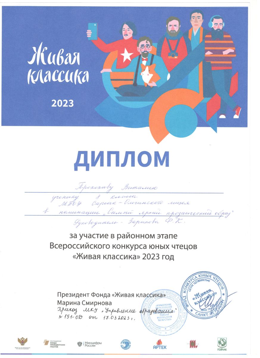 Участие обучающихся: Грамота Савельев С. Диплом Прокопьев В. Диплом Снурницена А. Грамота Маркитонова В. Грамота Прокопьев В.