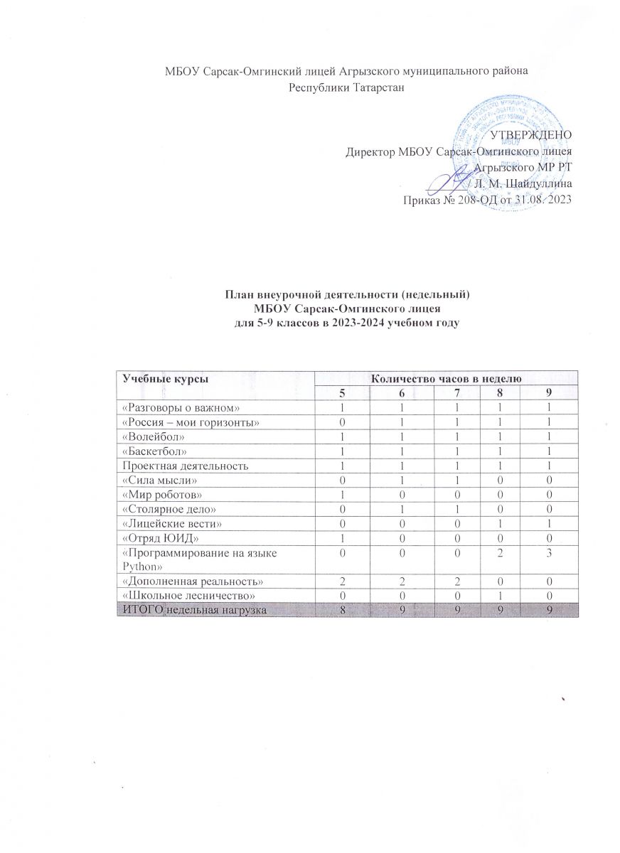 План внеурочной деятельности на уровень основного общего образования на 2023-24 у.г.