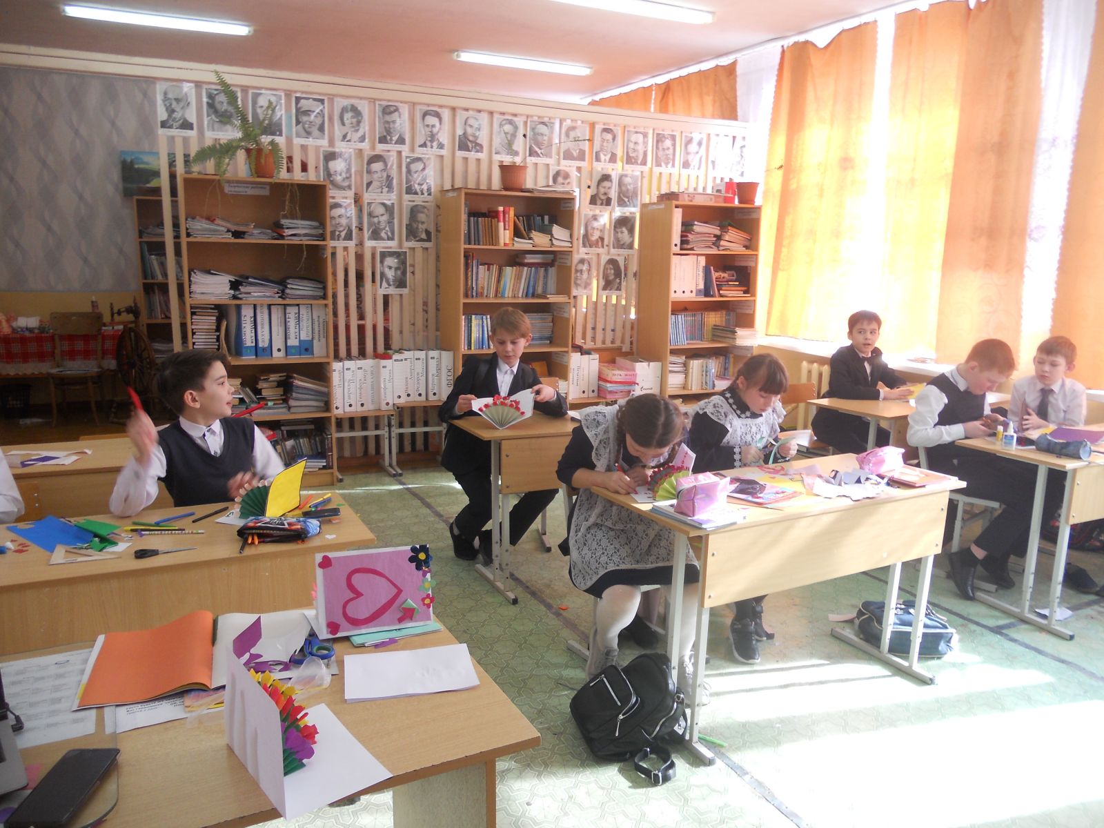 Халыкара хатын-кызлар көне уңаеннан сыйныфларда бәйрәмгә әзерлек бара: укучылар әниләренә, әбиләренә, кыз туганнарына үз куллары белән бүләкләр әзерлиләр.