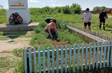 Бүген укучылар белән, авылыбыз башындагы һәйкәл янында булдык. Егетләребез һәйкәл буендагы печән,чүп үләннәрен чаптылар, кызлар тырмаладылар, башка укучылар белән җир казыдык, чәчәкләр утырттык, сулар сиптек. Укучылар бик актив хезмәт куйдылар. Һәйкәл яны ачылып, матурланып китте. Чәчәкләр үсеп, чәчәк аткач , һәйкәл алды тагыда матурланыр.