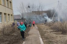 Сотрудники школы начали работу по очистке пришкольной территории.