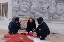 Ученики 9, 11 классов возложили цветы к памятнику. -