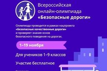 В период с 1 ноября по 19 ноября 2021 года на образовательной платформе Учи.ру проходит всероссийская онлайн-олимпиада «Безопасные дороги» на знание основ безопасного поведения на дорогах для школьников 1-9 классов.