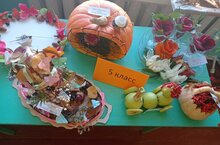 "У нас есть большое хозяйство. Мы всей нашей дружной семьёй трудимся: садим, пропалываем, поливаем. Осенью урожай нас очень радует. Особенно тыква." Кадушкин Ринат, Кадушкина Регина. 5 класс.