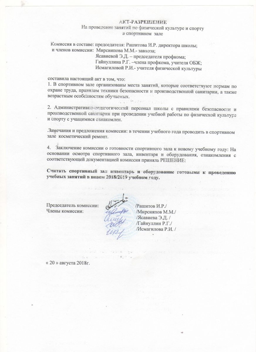 Ответственный за спортивный зал: Исмагилова Роза Ильгизовна