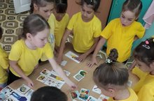 Дети подготовительной группы знакомились с профессиями родителей. Каждый из них горд за своих родителей, они так увлеченно рассказывали о них.Затем их ждал сюрприз, игра, которая требовала от них сообразительности. Было здорово.
