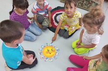 Сегодня Гузель Фаритовна провела очень классное мероприятие "День мыльных пузырей". Были организованы различны спортивные соревнования, и конечно же: Кто задует самый большой пузырь? ; У кого больше всех?. Было так весело, что дети совсем не хотели расставаться со своим увлечением.