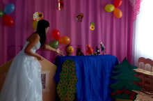 Бүген безнең бакчабызда белем көненә багышланган зур күңел ачу чарасы уздырылды. Балалар янына кунакка әкияти геройлар килде. Тәрбиячеләр тарафыннан курчак театры сәхнәләштерелде.