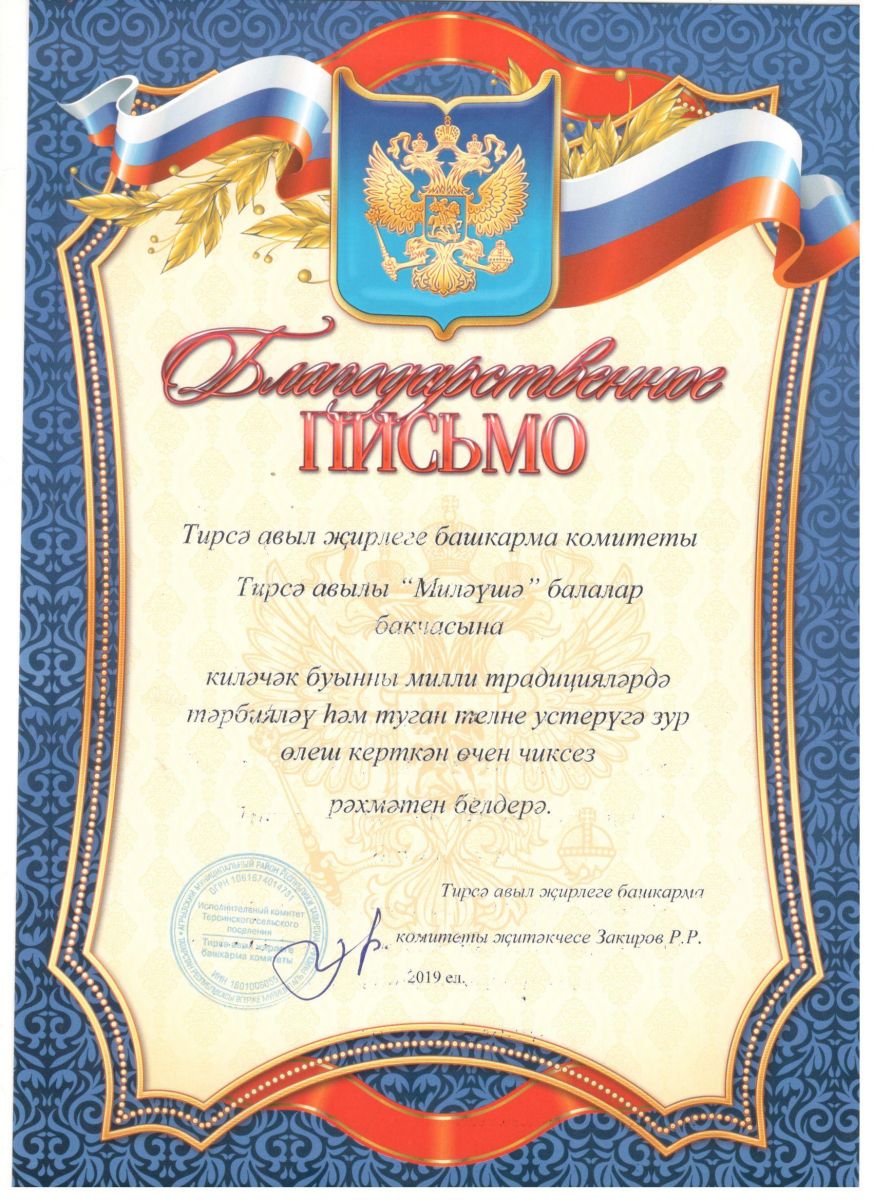 Муниципальное бюджетное дошкольное образовательное учреждение детский сад «Миляуша» села Терси Агрызского муниципального района Республики Татарстан
