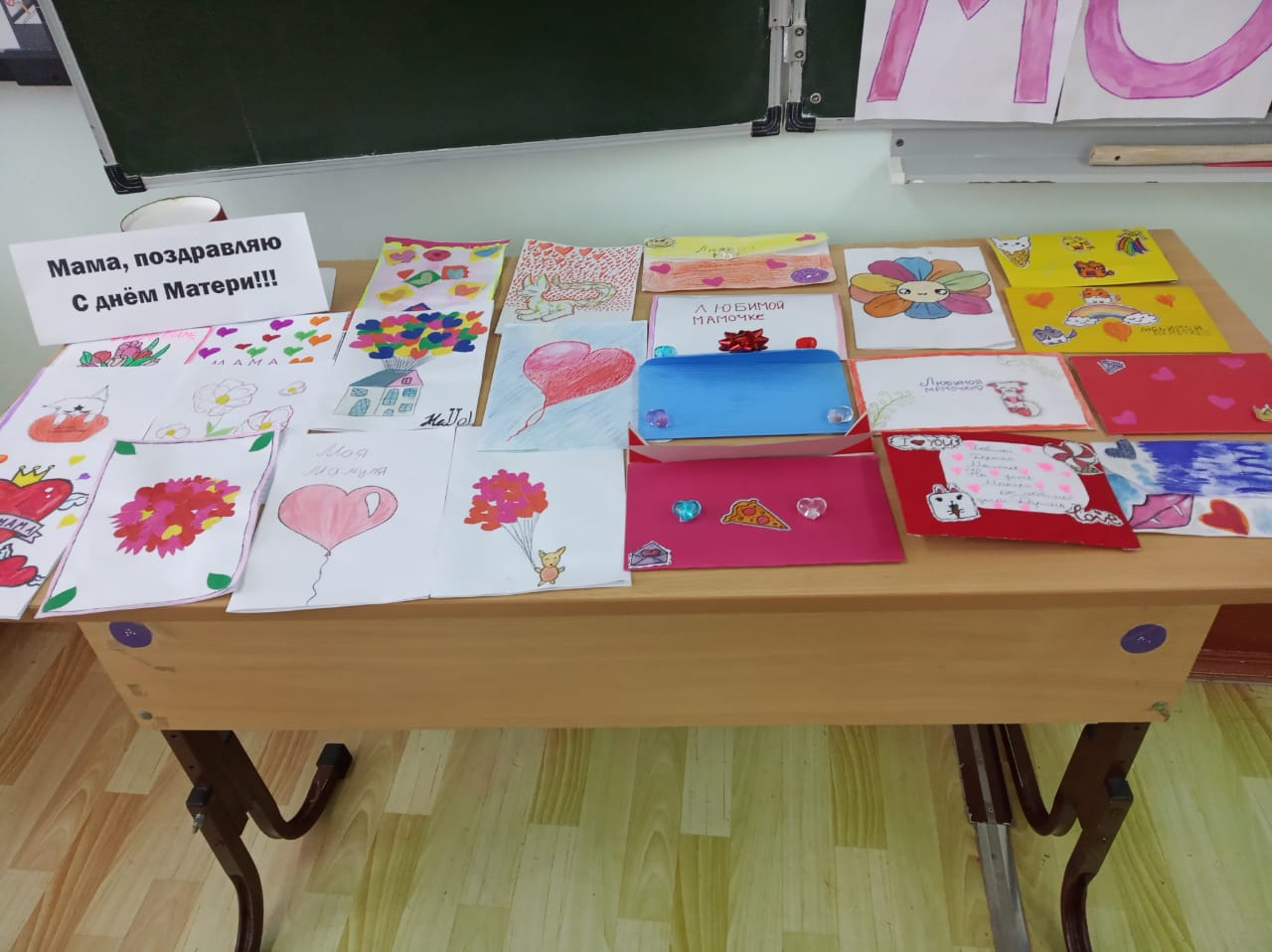 Наши талантливые дети – ученики 4 а класса под руководством педагога Гимазовой Ф.Г. смастерили праздничную открытку для мам, приуроченную ко дню Матери .В кабинете оформлена выставка детского творчества, на которой представлены яркие творческие работы на данную тему «Нет тебя дороже…».