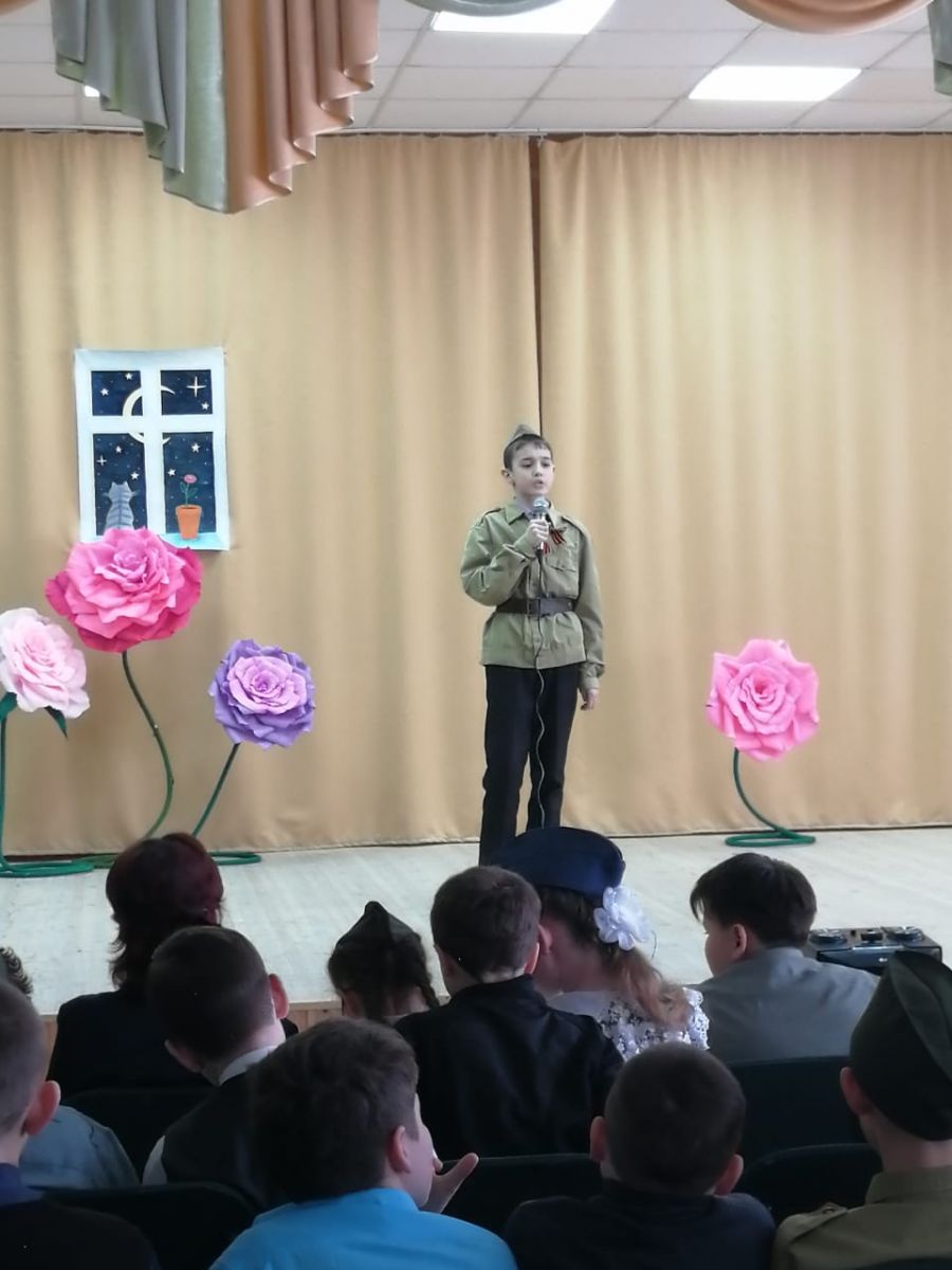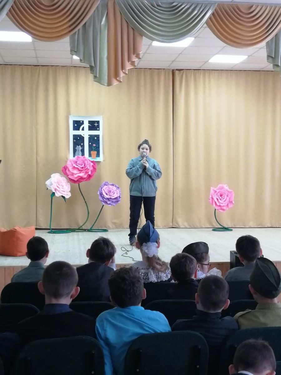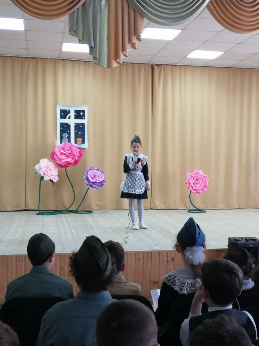 1-ое место-Баширова Карина (6 класс), 2-ое место - Ипоева Дарина (5-б класс), Нугманов Адель (5-а класс), 3-е место - Саттарова Алия (4-а класс), Шайдуллин Айнур (5-б класс), Кашапов Адиль (6 класс). По желанию учащихся 7-го класса прозвучало несколько стихотворений на тему Великой Отечественной войны. В номинации «Военная поэзия» бесспорным победителем стала Пекшикова Александра из 7-го класса. Поздравляем всех участников конкурса с успешным выступлением! К конкурсу ребят готовили учителя Тукманова Г.Ф., Ипоева А.С., Мусина Л.З., Шабаева Ф.З.