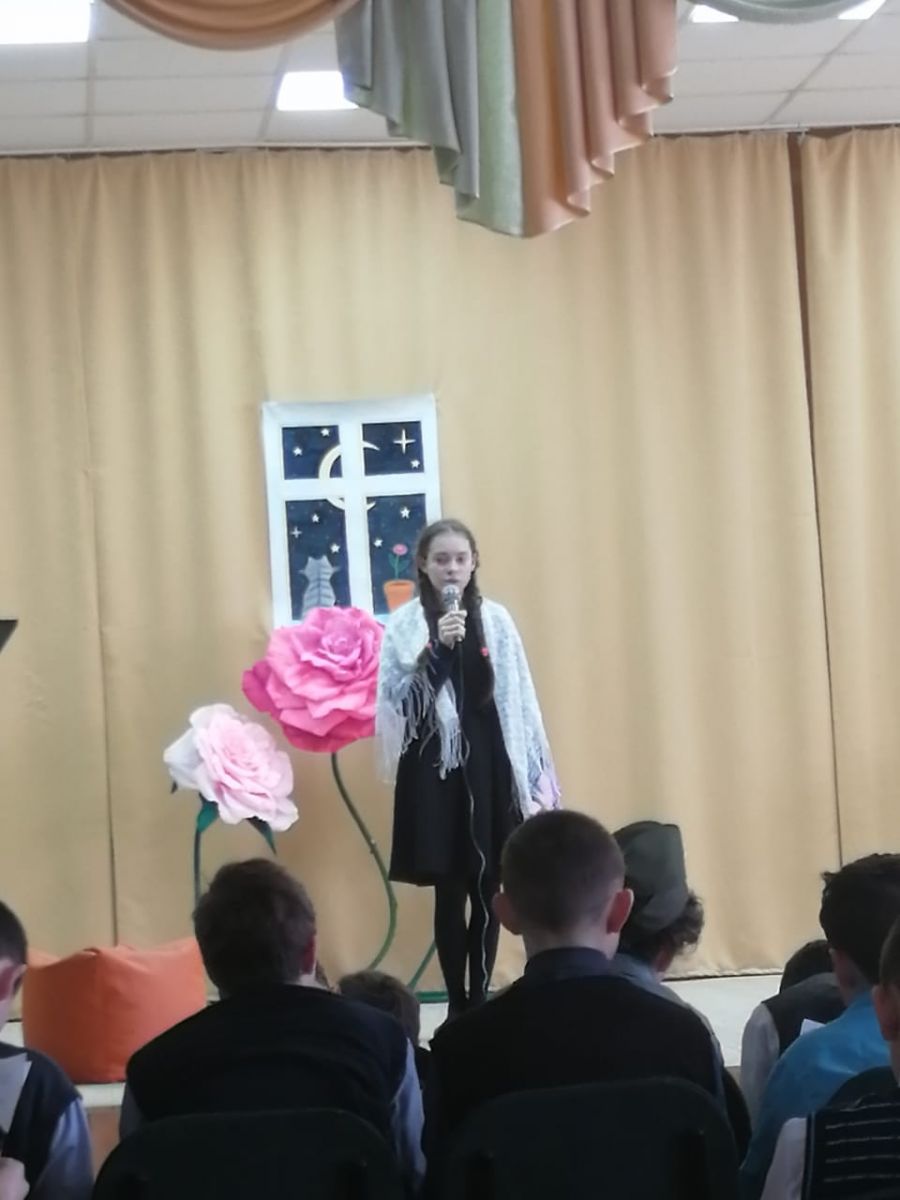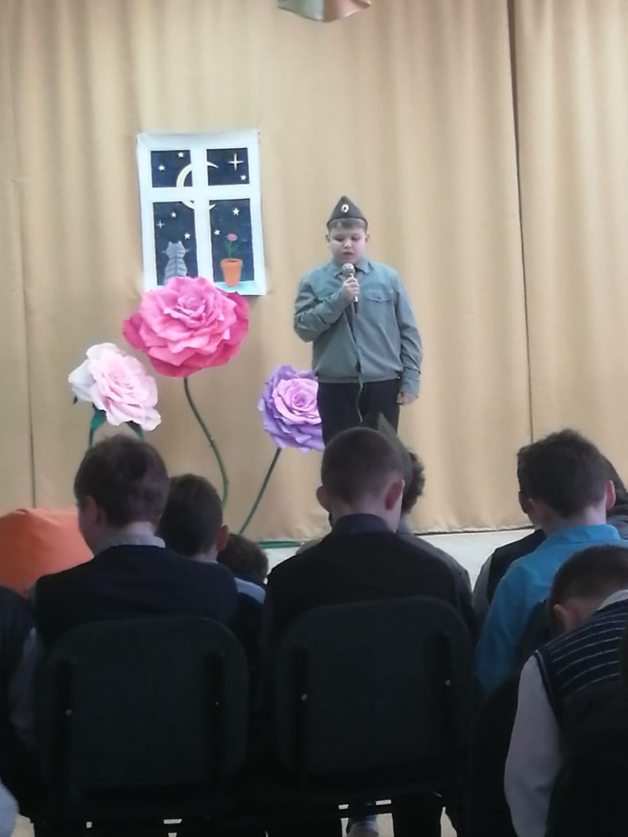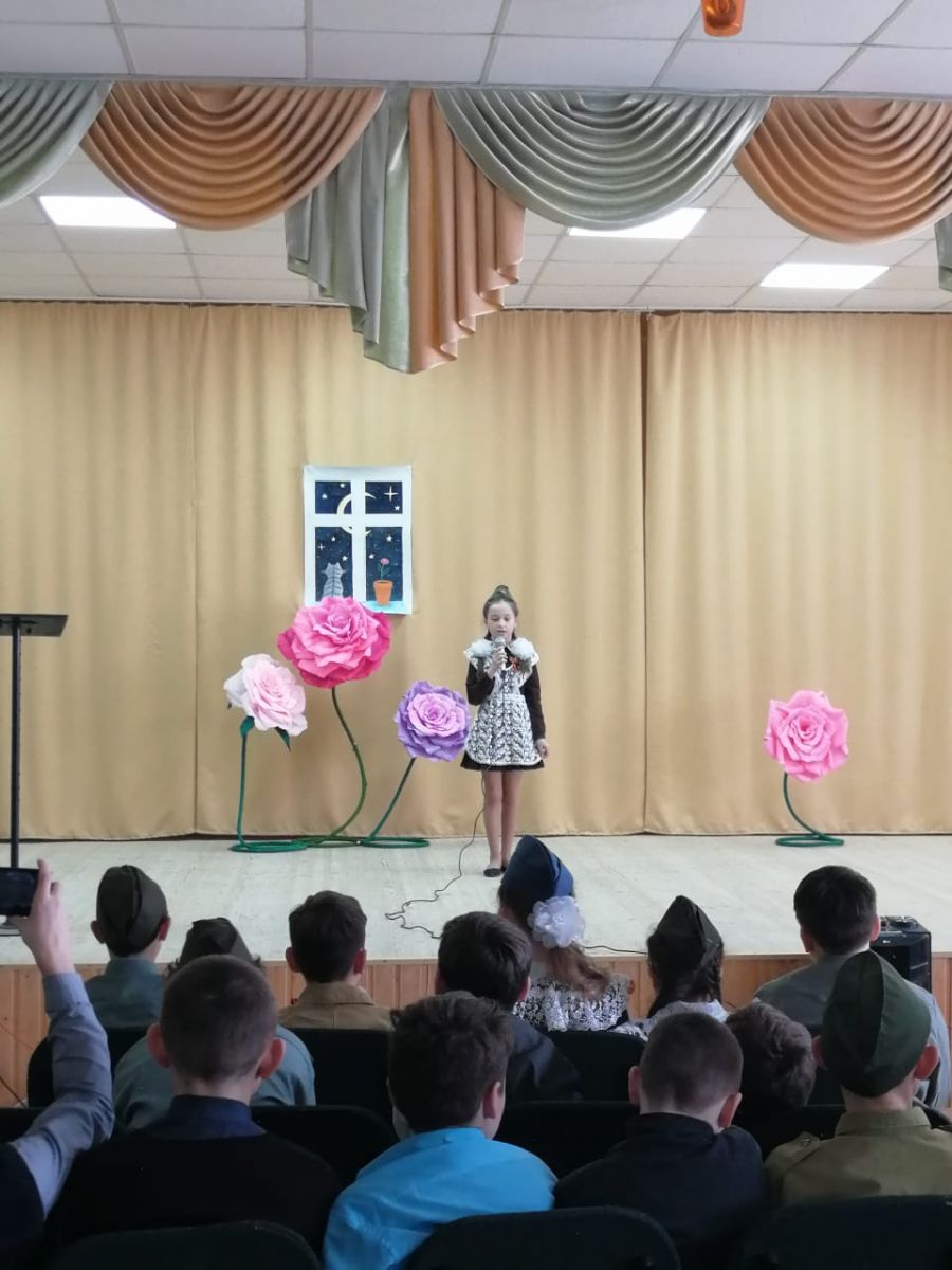 1-ое место-Баширова Карина (6 класс), 2-ое место - Ипоева Дарина (5-б класс), Нугманов Адель (5-а класс), 3-е место - Саттарова Алия (4-а класс), Шайдуллин Айнур (5-б класс), Кашапов Адиль (6 класс). По желанию учащихся 7-го класса прозвучало несколько стихотворений на тему Великой Отечественной войны. В номинации «Военная поэзия» бесспорным победителем стала Пекшикова Александра из 7-го класса. Поздравляем всех участников конкурса с успешным выступлением! К конкурсу ребят готовили учителя Тукманова Г.Ф., Ипоева А.С., Мусина Л.З., Шабаева Ф.З.