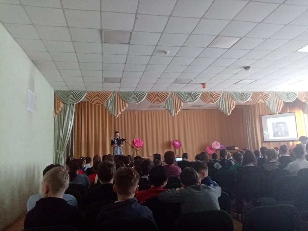 21 февраля в рамках декады русского языка и литературы ученицы 10 класса под руководством учителя русского языка и литературы Мусиной Л. З. представили литературно-музыкальную композицию «Юность, опалённая войной», посвящённую 75-летию Великой Победы. Девушки в своей миниатюре трогательно рассказали о судьбах совсем молодых девчонок, ушедших на фронт со школьной скамьи, о девчонках-медсёстрах, санитарках, спасавших на полях сражений жизни раненых солдат, связистках, разведчицах.