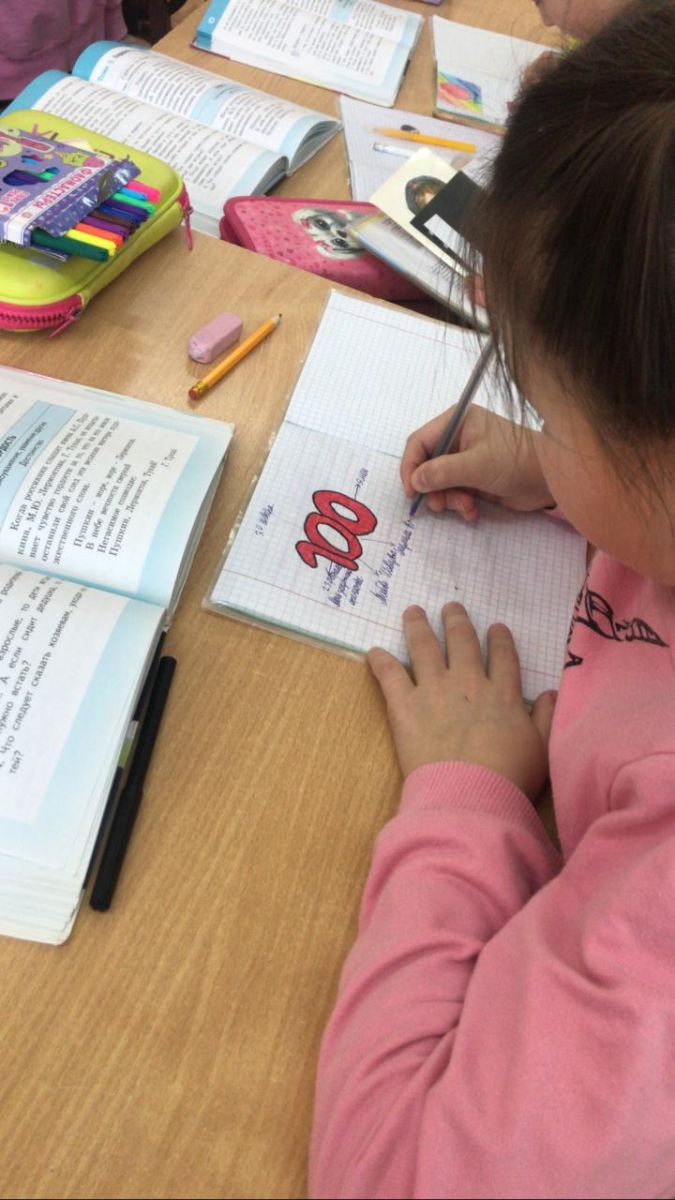 Бүген 4 а класста тарих укытучысы Избекова г.А. "Җиңүгә 100 көн"дип исемләнгән әңгәмә үткәрде. Балалар тактада кластер тутырдылар, эмблема уйлап таптылар һәм дәфтәргә рәсмиләштерделәр. Пионерлар-Бөек Ватан сугышы геройлары турында, Саша Бородулинның батырлыгы турында сөйләделәр, М.Исаковскийның шигырьләрен укыдылар.