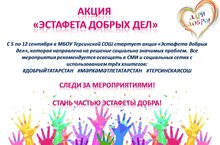 Сегодня в нашей школе стартует акция под названием "Эстафета добрых дел", целью которой является решение социально значимых проблем. В течение недели в школе будут организованы различные мероприятия. фото