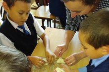 Сегодня продолжается акция "Эстафета добрых дел" под хэштегом #Мывместе. Задача дня - оказание помощи, воспитание толератности. Проведено благотворительное мероприятие, с целью помочь дополнить фонд школьного музея татарского быта. Учащиеся 2 б класса сделали татарские национальные блюда из соленого теста. В ходе мероприятия ученики вспомнили названия татарских блюд: чак-чак, очпочмак, балеш, олеш, кыстыбый, перемеч и т.д.
