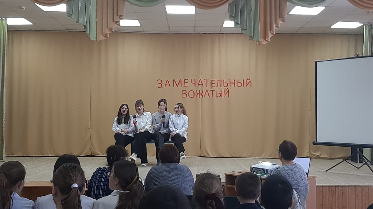 В школе прошёл школьный этап Республиканского конкурса "Замечательный вожатый". Участие в конкурсе приняли ученики 7-9 классов. Участникам нужно было заранее подготовиться к некоторым заданиям конкурса. Визитка, художественный номер, проведение игры, решение педагогических задач и оформление афиши мероприятия - это всё, что требовалось от конкурсанток. Члены жюри вручили всем грамоты , а победительницей признана, ученица 8 б класса Муфтиева Зиляра. Она будет представлять нашу школу на муниципальном уровне. Желаем ей удачи! Другие конкурсанты были не менее достойны и выступили с интересными номерами.