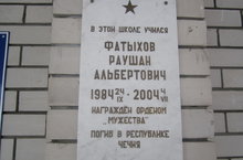 В школе создан стенд, посвященный выпускнику нашей школы Фатыхову Раушану, погибшему в Чечне. Раушан награжден Орденом мужества. Здесь демонстрируются фотоматериалы о его жизненном и боевом пути.