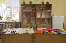 В холле школы устроена выставка творческих работ "Дарим добро!". Выставка поделок сделанная руками ребят с нарушениями развития учащихся ко Дню Инвалидов. Сами учащиеся провели Мастер-классы по изготовлению поделок.