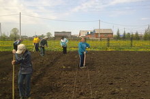 Сегодня силами педагогического коллектива, учащихся средних и старших классов ТСОШ пришкольные картофельные поля засажены картофелем...
