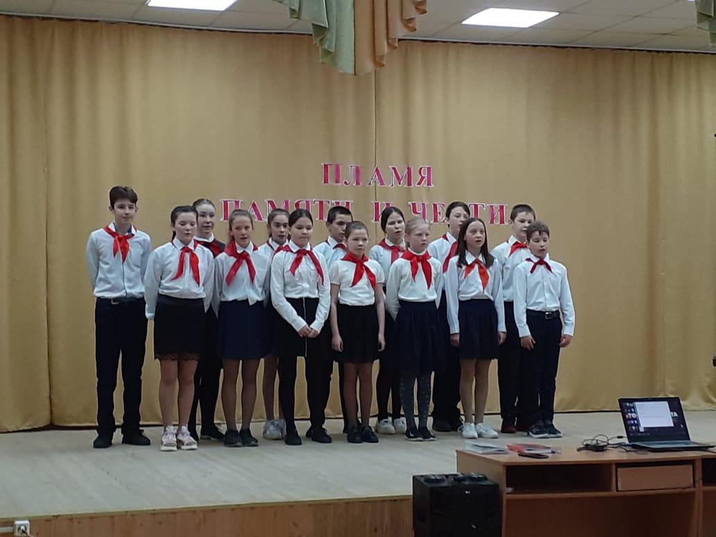 Быел В.И. Ленин исемендәге Бөтенсоюз пионерлар оешмасы оешуга 100 ел тулуны билгеләп үтә. Иң яхшы сыйфатлар тәрбияләп Совет яшьләренең балалар һәм яшүсмерләр берләшмәсенә әверелде. Пионерия белән дуслык, җаваплылык, риясыз ярдәм һәм үз ватаныңа мәхәббәт турындагы төшенчәләр аерылгысыз бәйләнгән. Бу көн пионер галстугын йөртүчеләр өчен чын бәйрәм булып тора. Пионер булган һәм ул мәктәп елларын хәтерли торган барлык кешеләрне бәйрәм белән котлыйбыз. Бүген балаларда патриотизм, әхлакый кыйммәтләр тәрбияләү, пионерлар оешмасы тарихы, пионерлар тормышында җырның роле белән танышу максатыннан пионерлар җыры фестивале үткәрелде. Фестивальдә пионерлар оешмасының барлыкка килү тарихы, Бөек Ватан сугышы елларында пионерлар батырлыгы белән бәйле җырлар, туган ил, дуслык, тынычлык турында җырлар, учак янында җырлар башкарган 1-8 сыйныф укучылары катнашты. Укытучылар балалар белән үзләренең пионер балачакларының бәхетле мизгелләре белән уртаклаштылар.