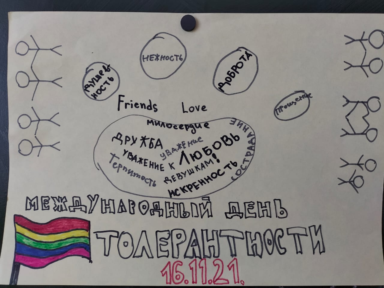 По традиции 16 ноября в нашей школе отметили Международный день толерантности. Что же такое толерантность? Само слово толерантность с латинского переводится, как терпимость. Как социологический термин, толерантность обозначает терпимость к иному мировоззрению, образу жизни, поведению и обычаям. В рамках данного дня были проведен классный час в 7 а классе, в ходе которого ребята обсуждали вопросы дружбы, терпимости, лояльности, изложили свое мнение по данной теме. В наше время - очень важно уметь общаться с людьми c разным менталитетом. Наш мир огромен. Все люди разные. Давайте жить в мире и будем терпимее друг к другу!