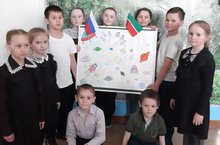 -3 б сыйныф укучылары төркеме: Шаракина Ильзина, Суходоева Камилла, Мостаков Артем - "Габдулла Тукай һәм аның геройлары" муниципаль буктрейлерлар конкурсында 1 урын өчен (җитәкчесе - Сибатова л. ф.)