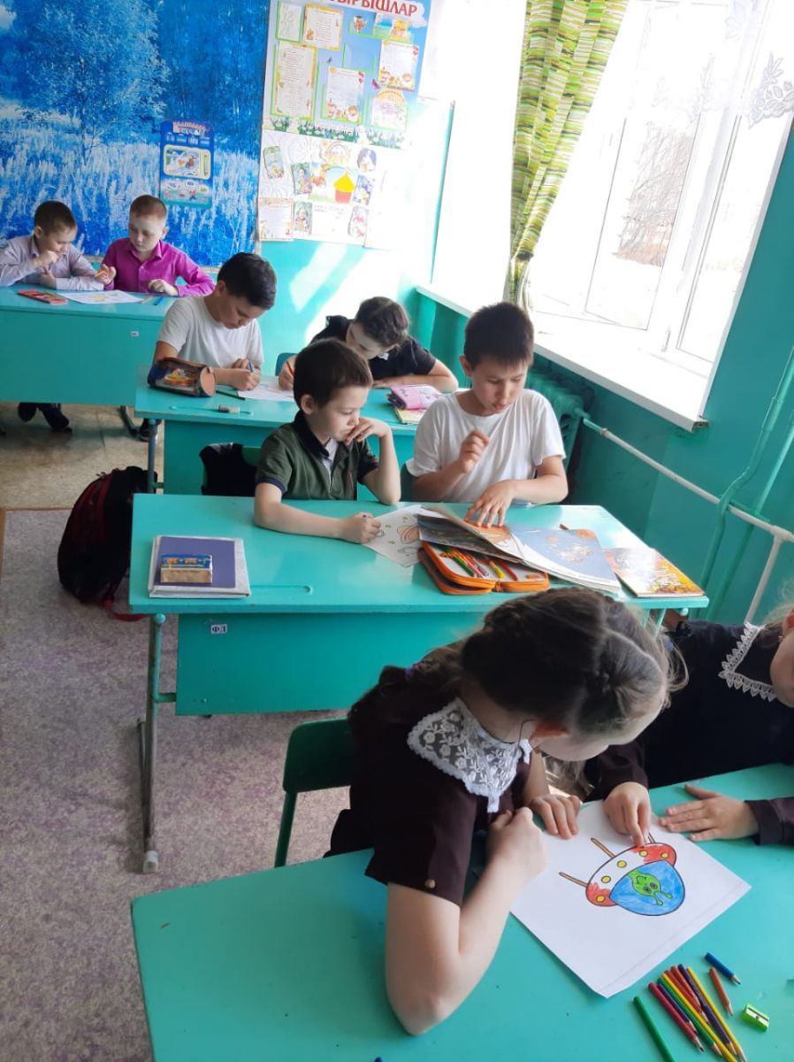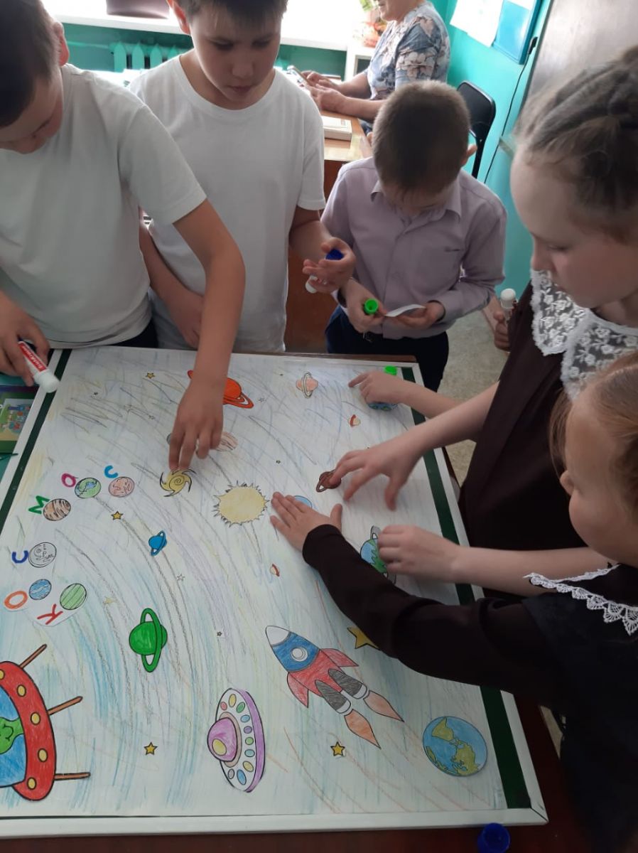 В Янга-Аульской начальной школе прошел классный час на тему "Путешествие в космос". Дети узнали о первом полете в космос, который совершил Ю. А. Гагарин, составили коллективное панно "Мы в космосе".