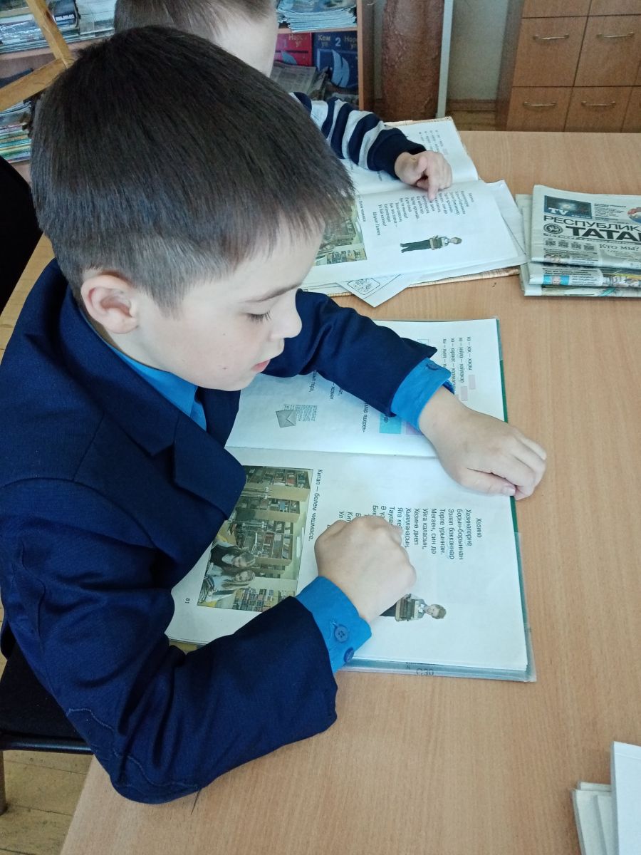 Бүген Туган телләр һәм халыклар бердәмлеге елы уңаеннан 1нче сыйныфта "Китап укымаган кеше -чәчәк күрмәгән бал корты" темасы буенча китапханәдә интеграль дәрес үтте.Укучылар китап турында шигырьләр, хикәя укыды. Валентина Аркадьевна кулъязма, басма, электрон китаплар белән таныштырды. Аннары балалар китап тоту кагыйдәләрен өйрәнделәр.