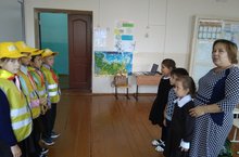 Отряд ЮИД побывал в гостях у первоклассников. Вел беседу о правилах дорожного движения и подарил световозвращающие значки.