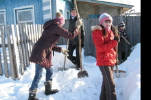 Девятиклассники часто бывают у своей подшефной Кудряшовой Валентины. Последний раз убирали территорию от снега.