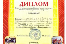 Поздравляем команду Емелькинской школы и ее руководителя Никитина А.Д. вернувшихся неоднократными победителями с зональной военно-спортивной игры "Зарница-2015" проходившими в г.Чистополь.