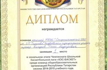 занявшую 1 место в зональном этапе Чемпионата школьной баскетбольной лиги "КЭС-баскет" сезона 2014-2015 годов