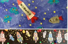 С 12 по 16 апреля в детском саду прошла тематическая неделя "Космос". Проведенные в группах занятия и беседы были направлены на развитие познавательных и творческих способностей воспитанников: много интересного узнали о космосе, планетах солнечной системы, космонавтах, устроили выставку рисунков по теме недели.