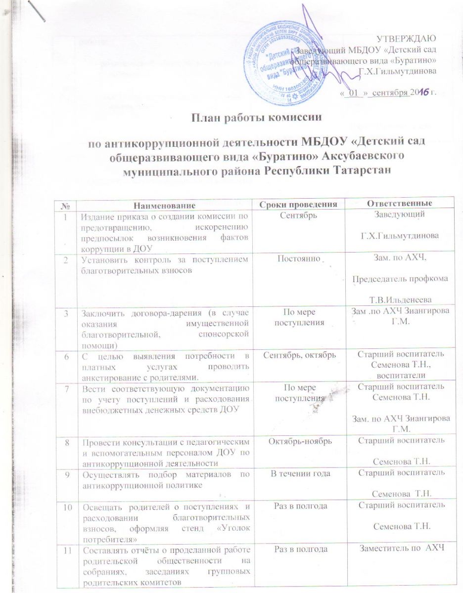 План работы комиссии по антикоррупционной деятельности