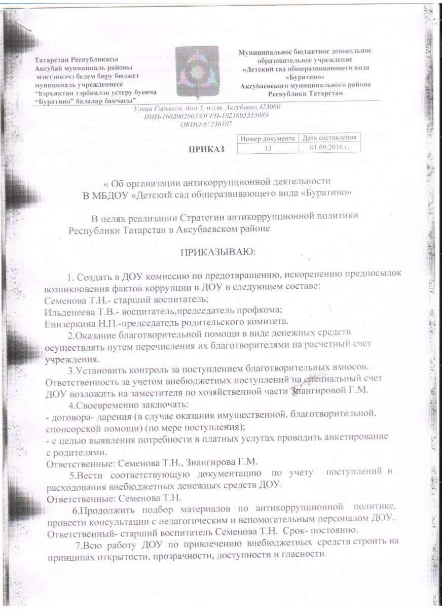 Приказ об организации антикоррупционной деятельности