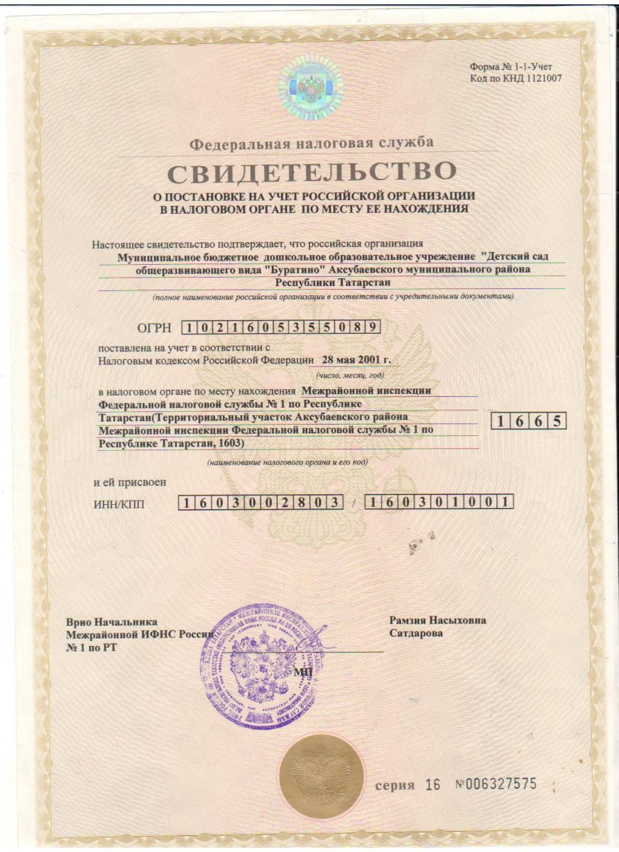 ИНН "МБДОУ "Детский сад общеразвивающего вида "Буратино"
