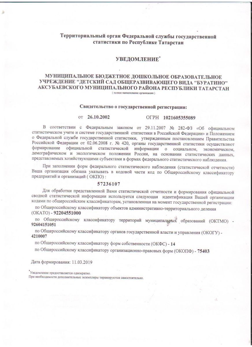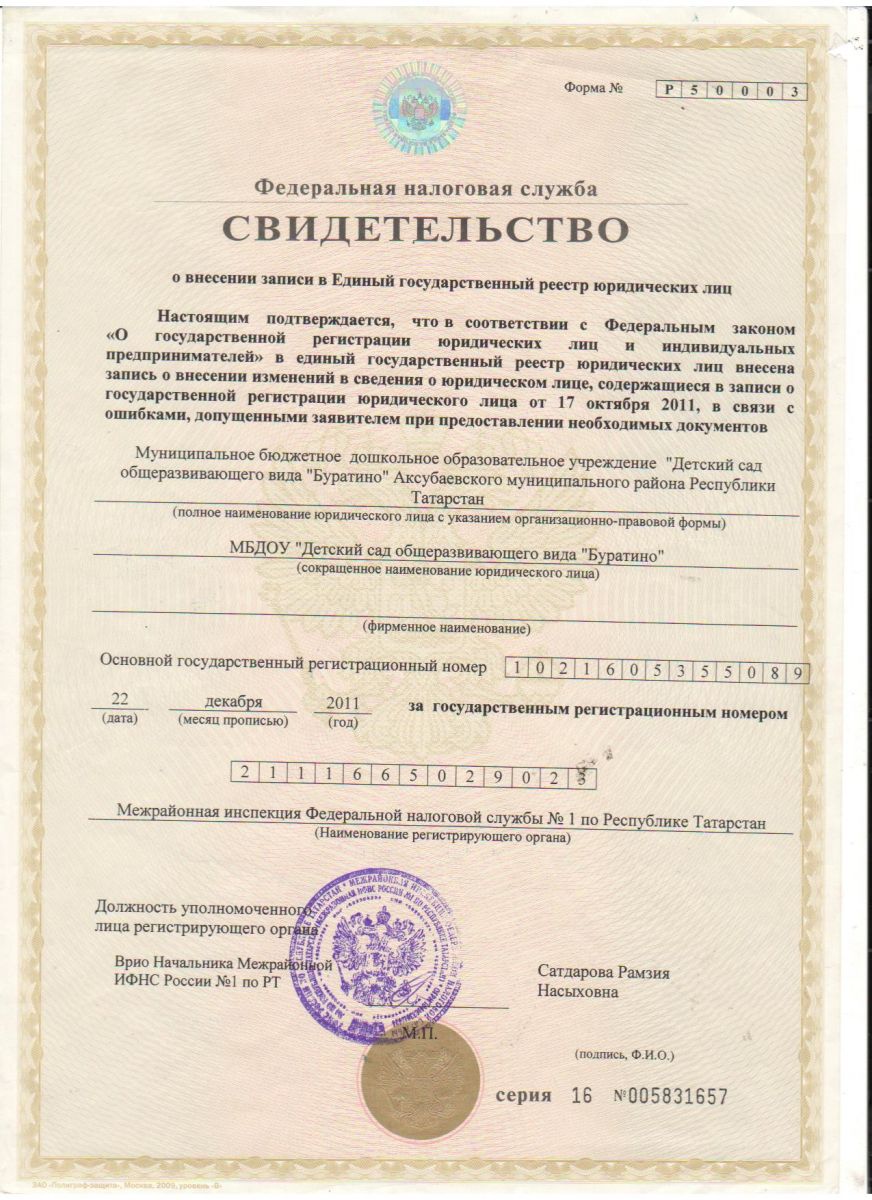 ОГРН "МБДОУ "Детский сад общеразвивающего вида "Буратино"