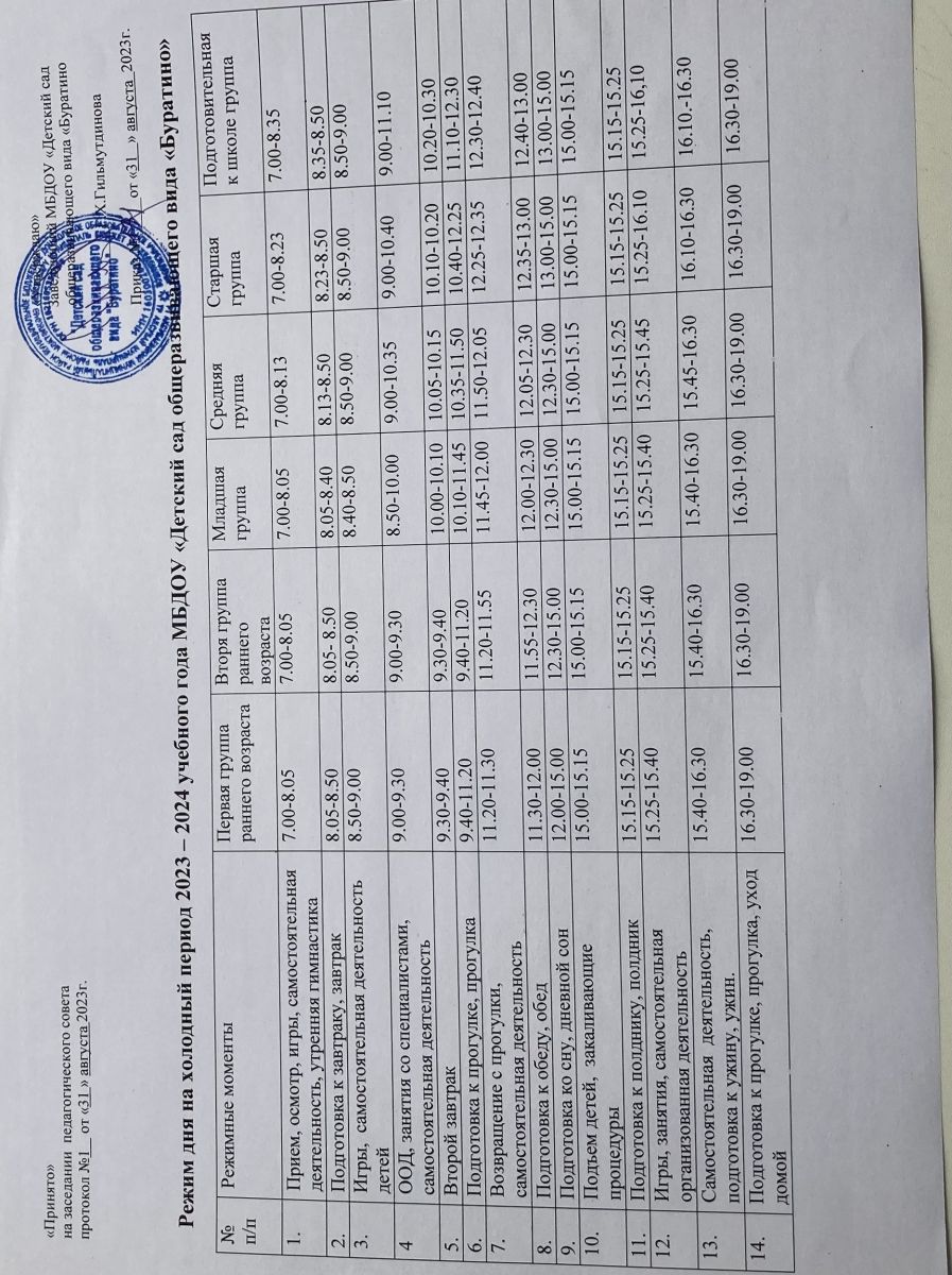 Режим дня на холодный период на 2023-2024 уч год