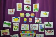 С целью формирования представлений о правильности питания и пользе овощей и фруктов в младшей смешанной группе прошла выставка рисунков «Вкусные и полезные витаминки»