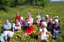 Дети старшей разновозрастной группы на экскурсии на лугах.