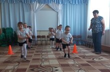 Задачи: Закрепить навыки детей, полученные на занятиях физической культуры; совершенствовать двигательные умения детей в беге, ходьбе, катание мяча в цель; развивать умение действовать по сигналу, ловкость , быстроту реакции, внимание; воспитывать выдержку, доброжелательность.