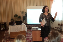 Воспитатель татарского языка Минхаирова Н.Р показала занятие в рамках УМК "Учимся говорить по-татарски",где были использованы аудио-и видеозаписи.Слушатели увидели методику составления развивающих диалогов,содержание занятий для детей средней,старшей и подготовительной к школе группах.