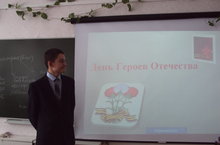 В день героев Отечества в школе прошли классные часы на тему «Наши герои земляки». Учитель истории Пахомова С.С. провела экскурс в историю образования праздника и отметила, что героями не рождаются, ими становятся. Каждый из нас может стать героем, если будет следовать примеру легендарных земляков.